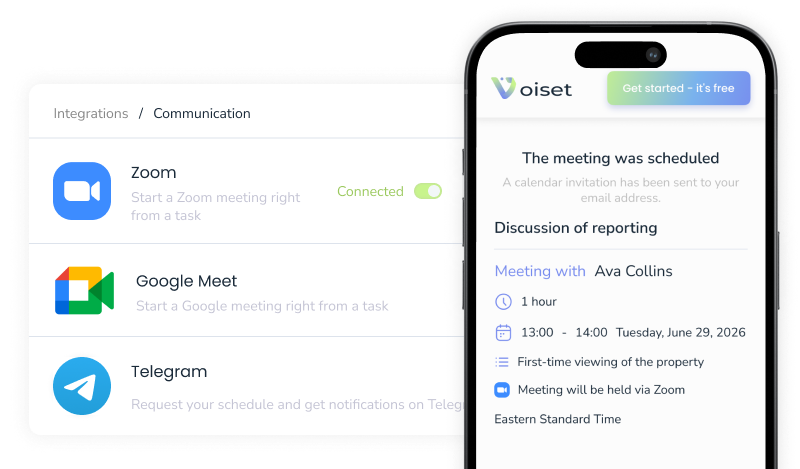 All your client appointments land in Voiset automatically — tasks and meetings, finally in one place