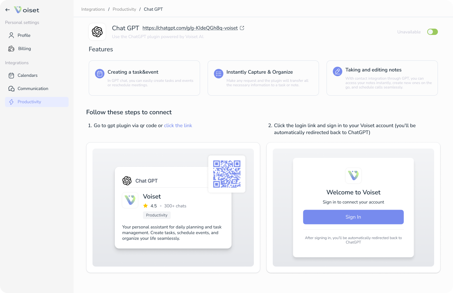 Step 1: Connect the Voiset Plugin to ChatGPT