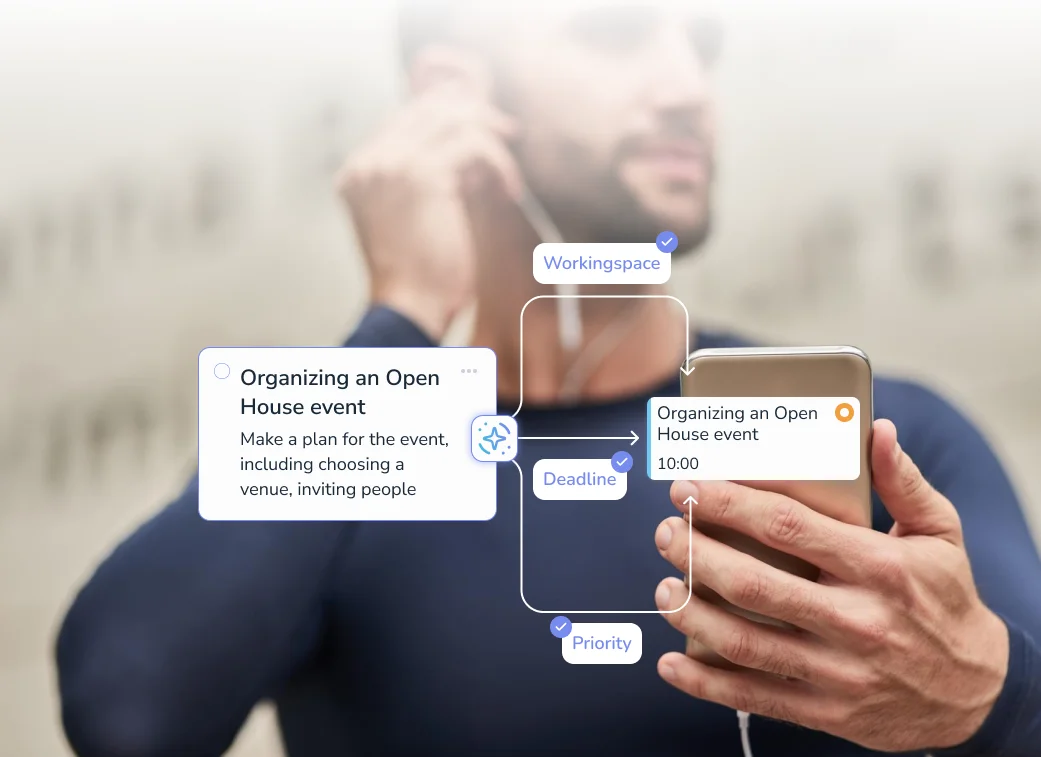 Your voice becomes tasks, deadlines, and reminders that sync automatically, helping you stay productive without the mental overload.